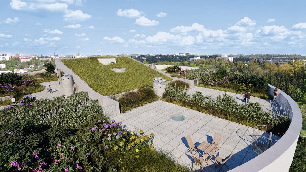 Zajímavostí bude také komunitní pobytová střecha domu. Její součástí bude společná střešní zahrada, která nabídne prostor k relaxaci, sousedským setkáním nebo komunitnímu zahrádkaření.