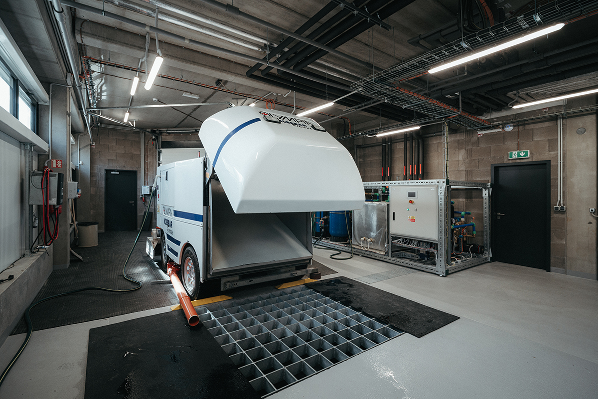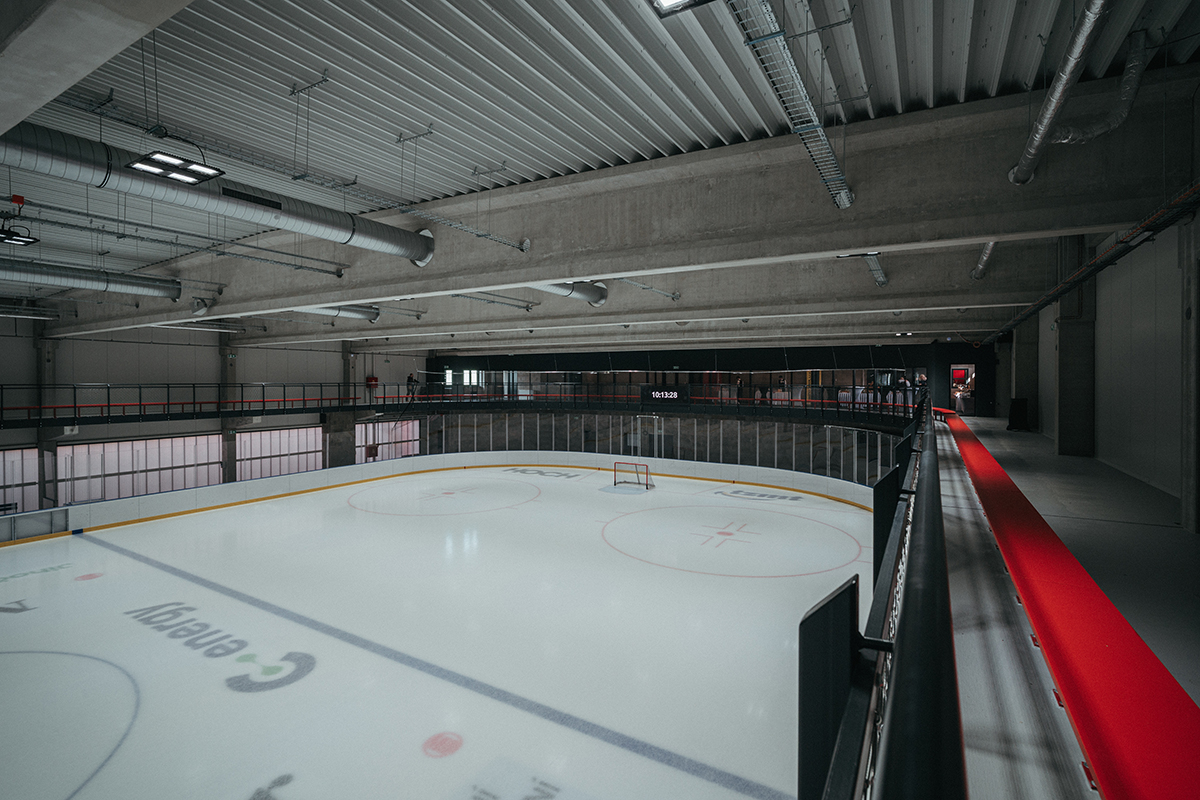 Halu o rozloze 80 krát 33 metrů tvoří jednoduchá konstrukce z betonových prefabrikátů zastřešená pomocí předpjatých vazníků. Díky nim stavbaři jednak překonali široký rozpon a zároveň mohli umístit na střechu fotovoltaické panely. Z technologického hlediska je třeba vyzdvihnout robustní chladicí systém, který na rozdíl od sousedního stávajícího stadionu umožní celoroční provoz bez nutnosti rozpouštění ledu.