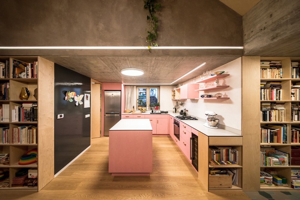 Z obytného prostoru vedou dveře do části, kde kdysi stály přístavky. Nyní zde získaly místo děti. Jejich pokoj sousedí s malým vnitřním atriem, které přivádí světlo do hloubky dispozice. Sedací okno slouží jako čtecí kout, pozorovatelna nebo únikové místo pro tiché přemýšlení.