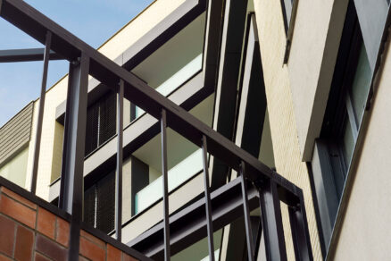 Architekt pokračuje: „Pergamenka je přístupná v režimu 24/7 a autentické kovové prvky pomohly s orientací. Vymezují totiž veřejné a komunitní zóny. Areál je rozdělen na dvě části – bytové domy a funkcionalistickou recepci (kulturní památku). Ta byla mimochodem jednou z prvních staveb na holešovické pláni.