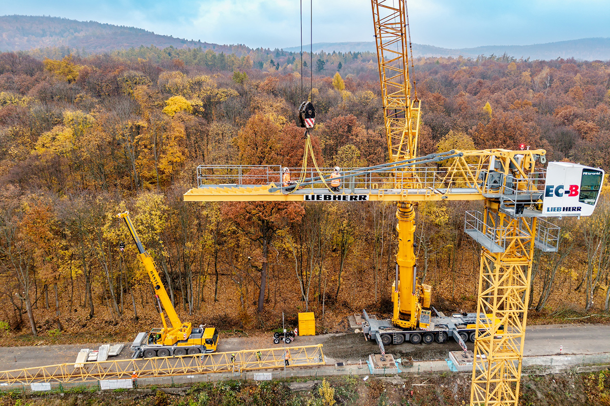 „Kvůli zajištění stání jeřábu byla nutná i úplná uzavírka přilehlé komunikace III/0138. Aby konstrukce unesla extrémní zatížení a byla zcela stabilní, vrtali jsme do skalního podloží. Kvůli svažitému terénu je zatížení jeřábu přenášeno prostřednictvím speciálně navržených železobetonových patek založených na sedmnáctimetrových mikropilotech. Jen montáž jeřábu trvala téměř dva dny. S tak mimořádnou délkou střešních panelů a sklonem terénu si mohl poradit jen největší jeřáb v Česku,“ říká Petr Lohniský, vedoucí projektu ze společnosti Metrostav CZ.