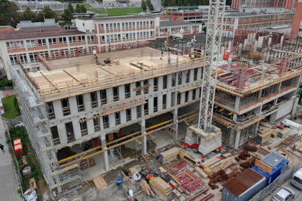 Stavbaři Metrostavu DIZ a Zlínstavu právě dokončují nosné konstrukce nové budovy Fakulty technologické Univerzity Tomáše Bati (UTB) ve Zlíně, která nahradí původní nevyhovující objekt z 30. let minulého století.