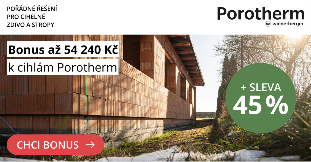 Správné načasování nákupu může přinést i zajímavé finanční úspory. Aktuálně stavebník s jarní akcí Porotherm získá slevu 45 % na kompletní nabídku zdiva Porotherm a navíc ještě bonus až 54 240 Kč – a tím nejen ušetří, ale zároveň investuje do materiálu, který zajistí dlouhodobou stabilitu a nízké náklady na vytápění.