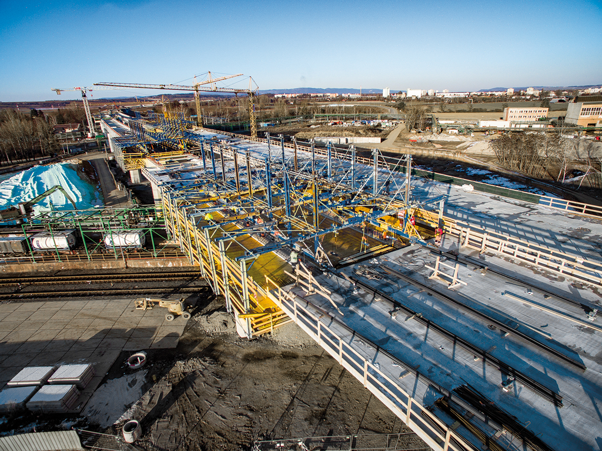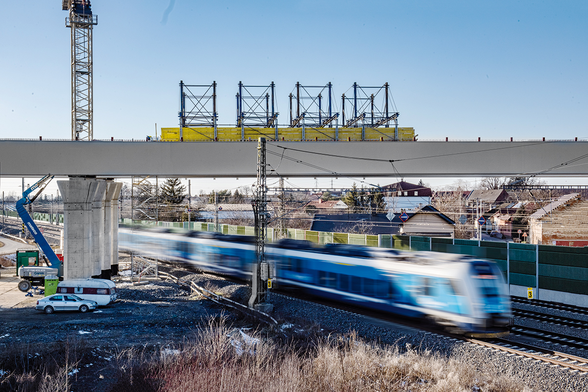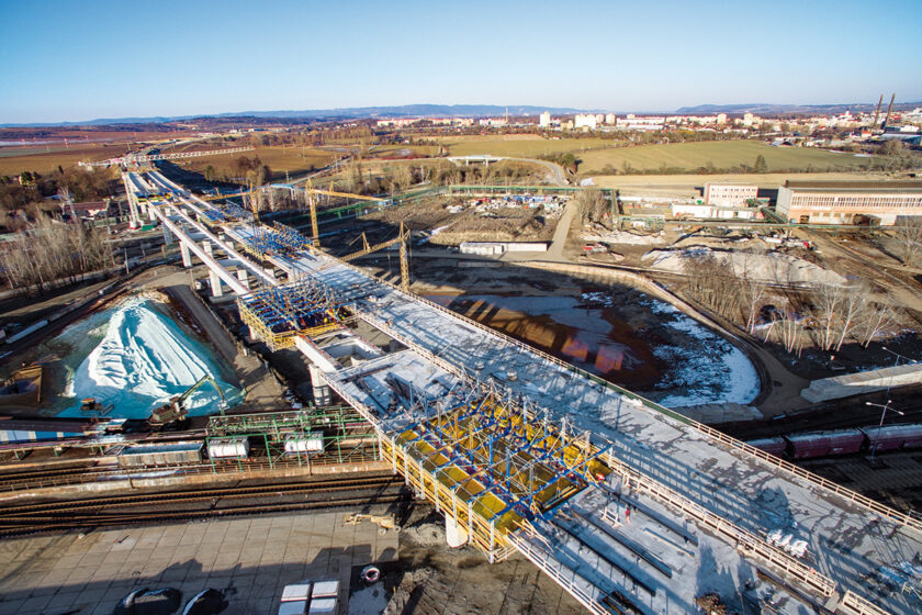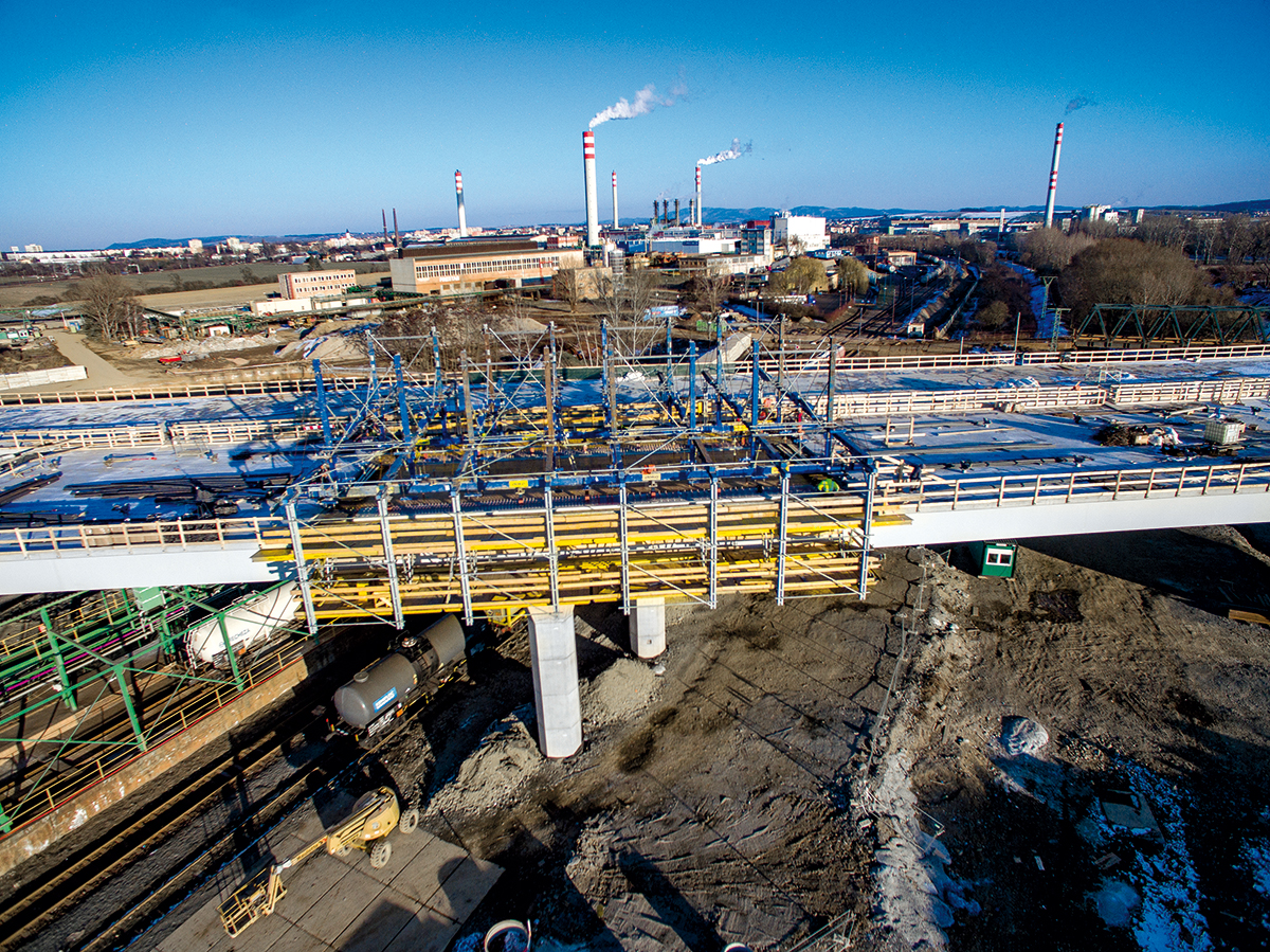 Použití speciálních bednicích systémů umožnilo efektivní stavbu nosných konstrukcí estakády i propojení ocelových a betonových konstrukcí.