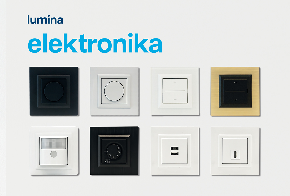 Na veletrhu AMPER vám představíme novinku – lumina elektronika, čili termostaty, pohybová čidla, žaluziové spínače a další přístroje. Stmívače lumina vám nově umožní jednoduše měnit intenzitu osvětlení a vytvářet atmosféru přesně podle nálady – od příjemného tlumeného světla pro odpočinek až po jasné osvětlení pro práci či zábavu. V nabídce najdete tři typy stmívačů, všechny plně kompatibilní se světelnými zdroji LED.